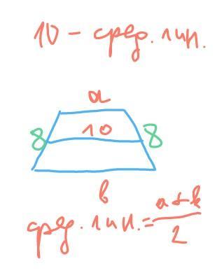 равнобедренной трапеции Боковая сторона равна 8 см а средняя линия 10 см Найдите периметр трапеции