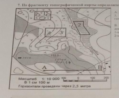 ПО ФРАГМЕНТУ ТОПОГРАФИЧЕСКОЙ КАРТЫ ОПРЕДЕЛИТЕ: А. КАКОЙ ИЗ УЧАСТКОВ, ОБОЗНАЧЕННЫХ ЦИФРАМИ 1, 2 ИЛИ 3, НАИБОЛЕЕ ПОДХОДИТ ДЛЯ УСТРОЙСТВА ПОЛЯ ИГРЫ В ГОЛЬФ.