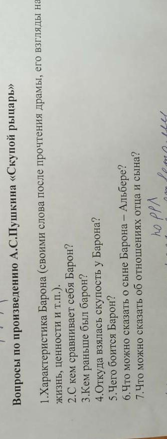 7)Альбер ненавидит отца, потому что тот держит его в нищете, не дает сыну возможности блистать на турнирах и на праздниках, заставляет унижаться перед ростовщиком. Он, не скрывая, ждет смерти отца, и, если предложение Соломона отравить барона вызывает в нем такую бурную реакцию, то именно потому, что Соломон высказал мысль, которую Альбер гнал от себя и которой боялся.
