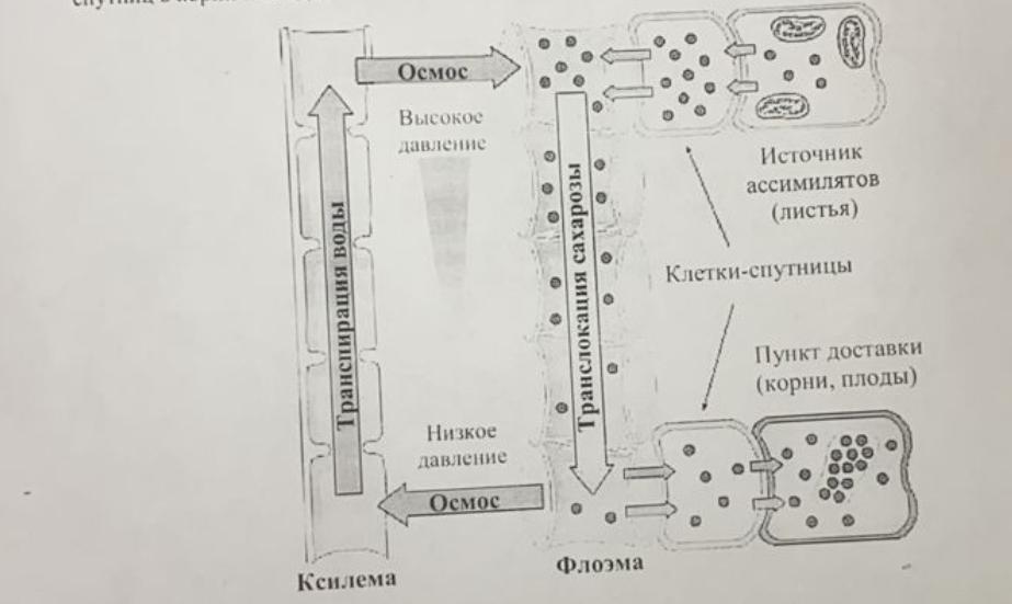 механизм транслокации веществ по флоэме процесс изученный недостаточно и на данный момент гипотеза тока под давлением (представленная на диаграмме) является наиболее подтверждеггой фактами транспорт сахарозы из листьев в клетки спутницы происходит активно так же и из клеток спутниц в корни и плоды