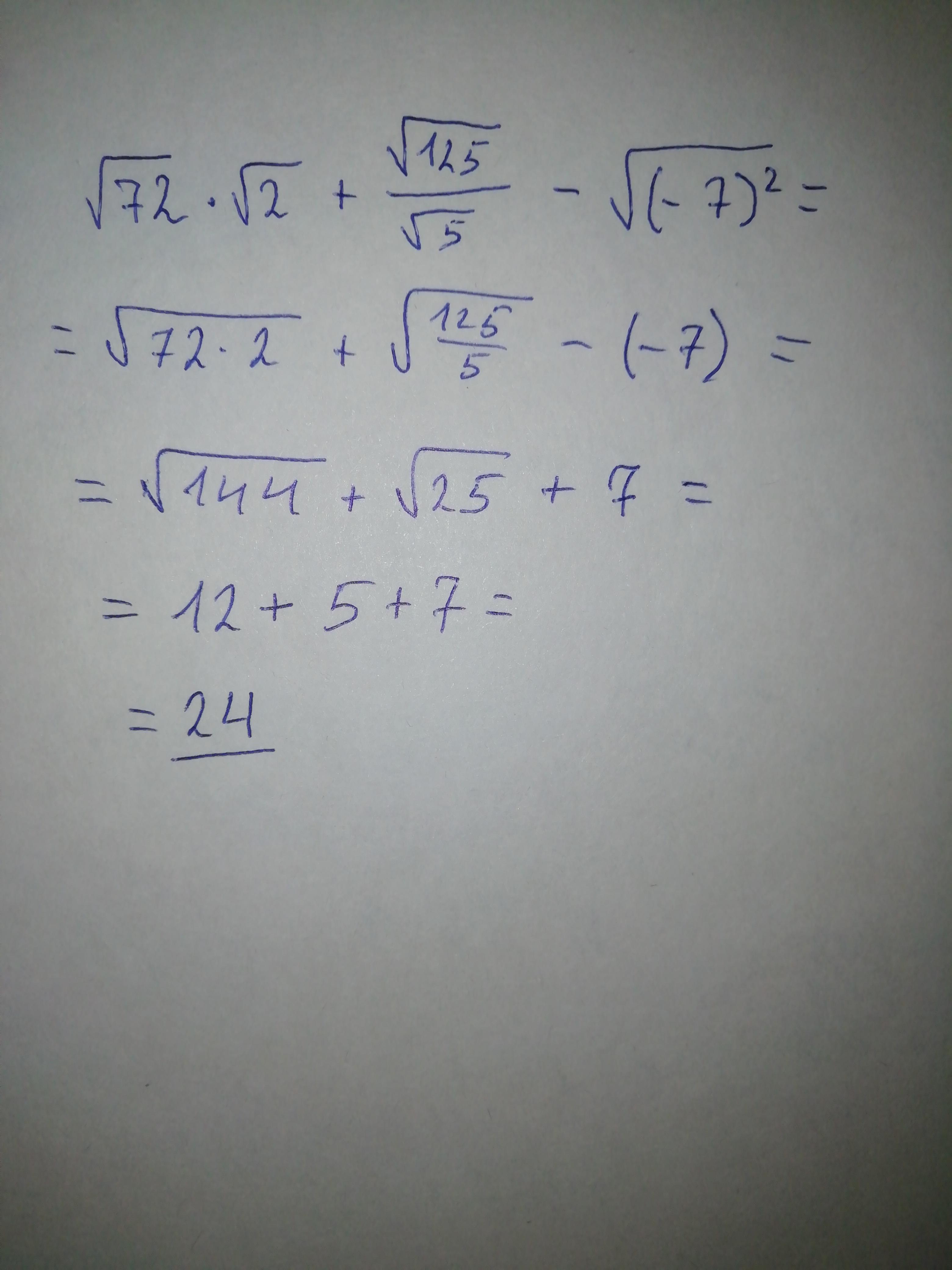Объяснение на фотографии, свойства корней тут это то, что при умножение и делении корня на корень можно взять оба числа под корень умножив или раздели их, и если число пло корень возведён в квадрат, то корень можно убрать