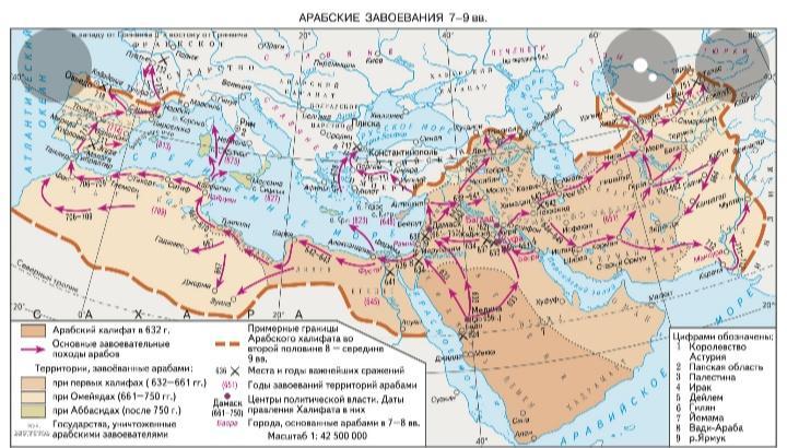 контурная карта седьмой класс арабские завоевания В седьмом и девятом столетии утворення Халифата