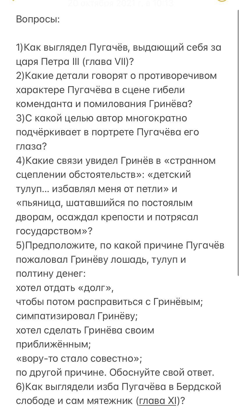 5) Пугачёв послал тоже тулуп – из овчины. Надо понимать, в оренбургской зимней степи это самая нужная вещь. Благодарная забота друг о друге на уровне простого человеческого желания согреть, не дать замёрзнуть – это один из моментов положительной характеристики Пугачёва, которого официальная литература представляла только злодеем, не имеющем искры добра. В благодарность.