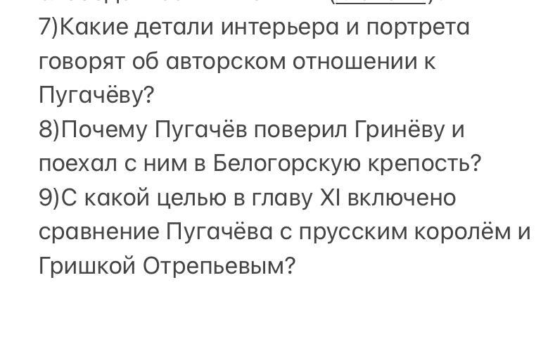 7) Интерьер и портрет — средства характеристики героя, они раскрывают тщетность попыток Пугачева сделаться царем: внешние «атрибуты власти» смешны, подчеркивают внутреннюю неуверенность «царя», несмотря на его актерский дар.