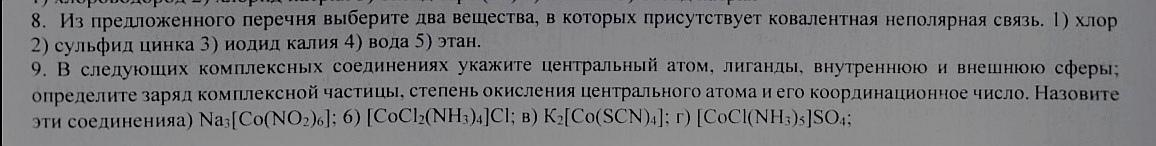 в) K2[Co(SCN)4] - центральный атом - Со, лиганды - , внутренняя сфера [Co(SCN)4], внешняя сфера - 2