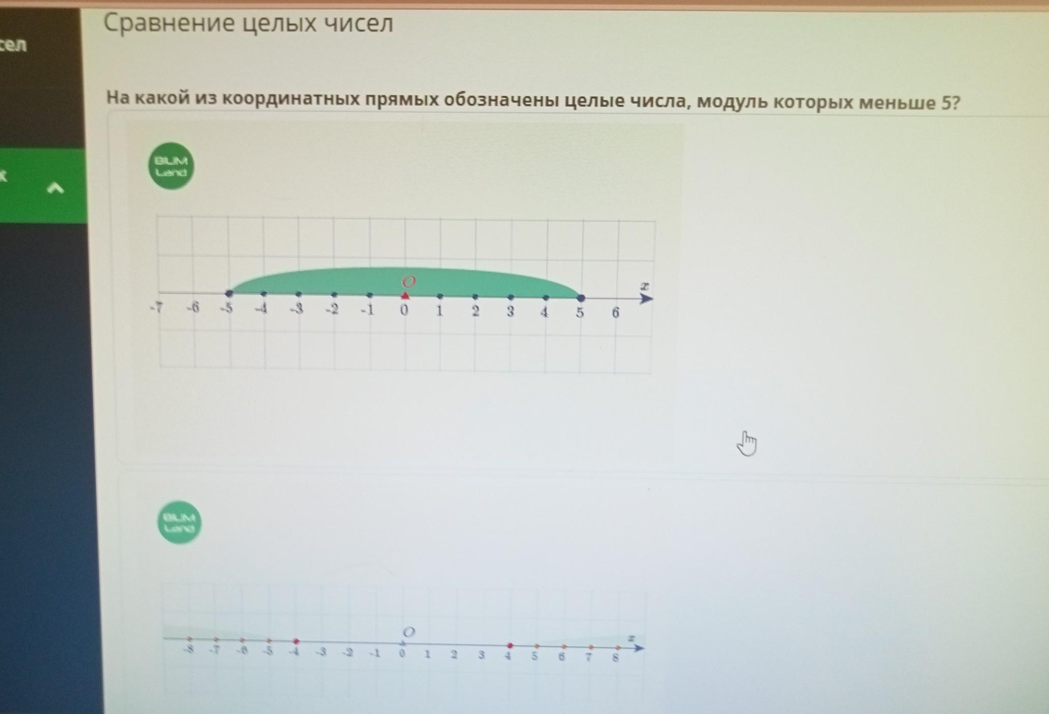 На первом (верхнем) рисунке изображены числа, модуль которых меньше пяти.