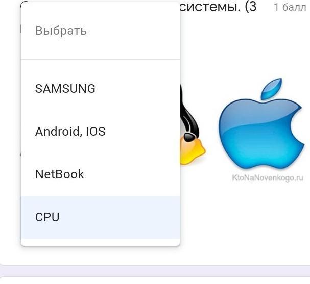 Или у тебя надо выбрать из тех, которые за Текстом, там я во всяком случае вижу иконку Linux, которой нет среди твоих вариантов ответа