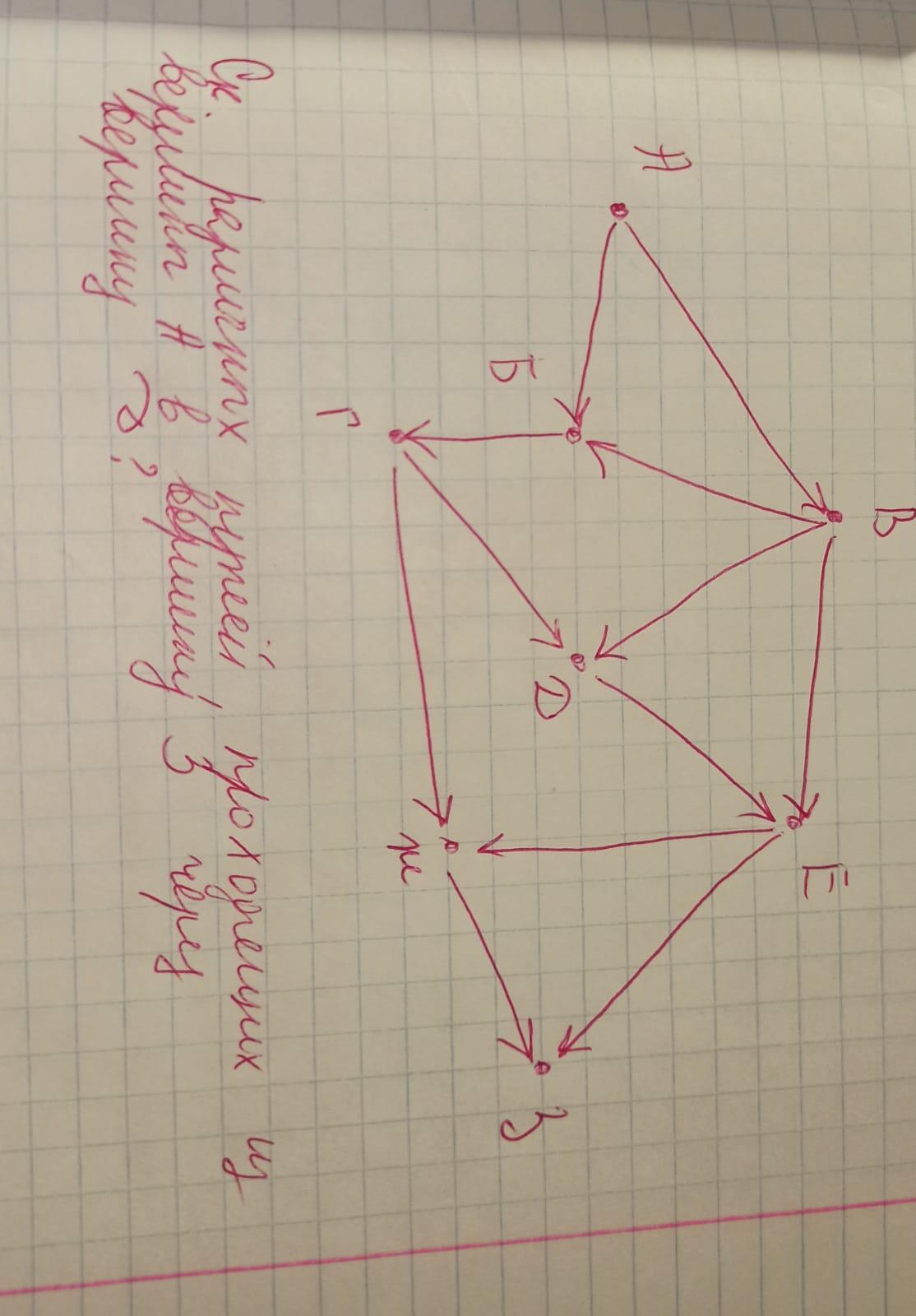 Получится 6 путей, потому что нужно вычислить только пути, проходящие через Д, то есть без БЕ и ГЖ, а их 6, ответы внизу неправильные