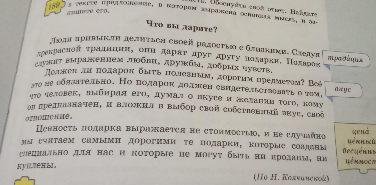 Прочитайте. Определите тип текста. Обоснуйте свой ответ. Нашите я ексте предложение, в котором выражена осозная мысль в за- сите его. Что вы дарите?
