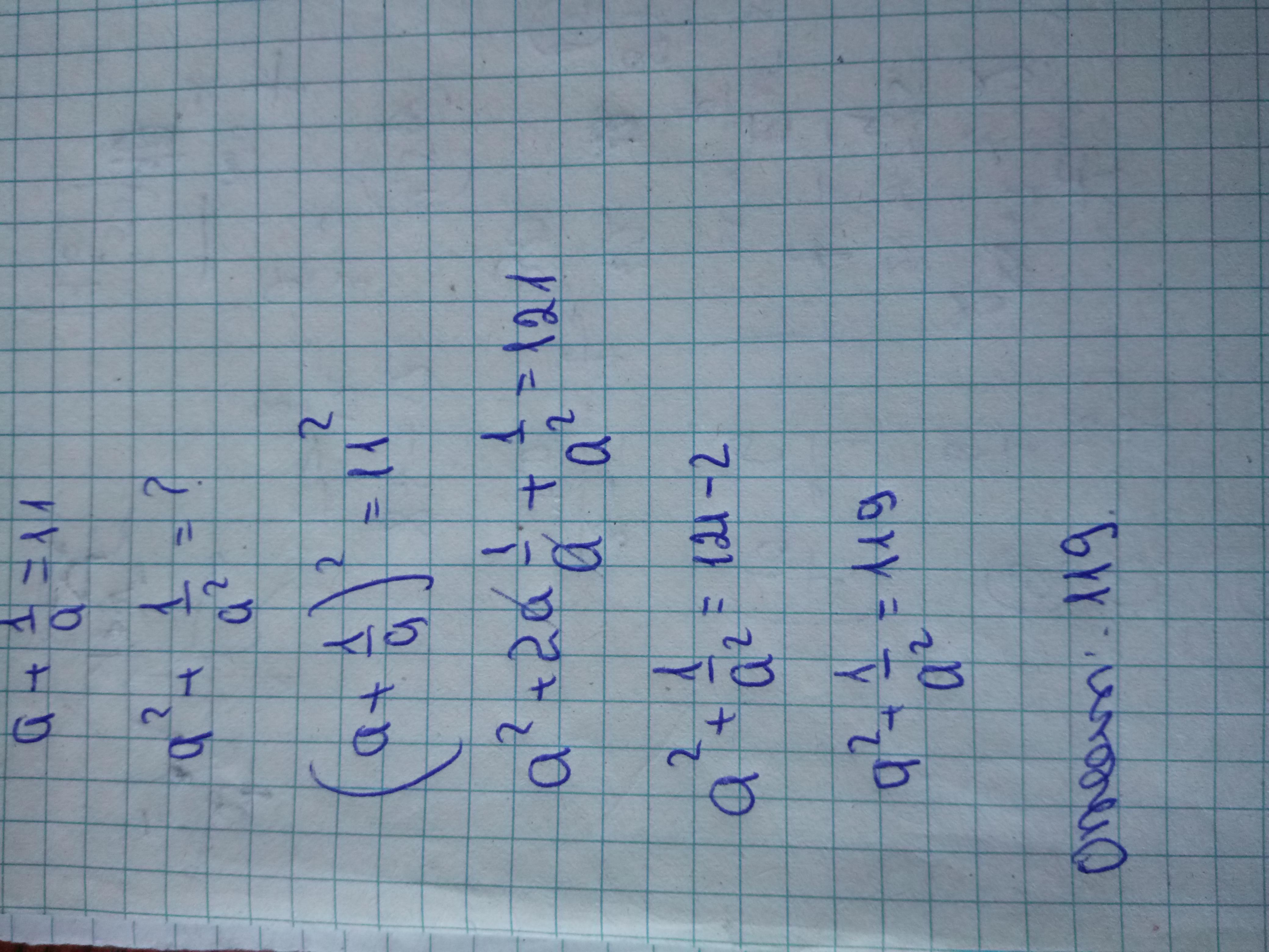 СРОЧНО!! ДАЮ 60 БАЛЛОВ!! Число а такого, что а + 1/а = 11. Чему может быть равно выражение: а^2 + 1/а^2?