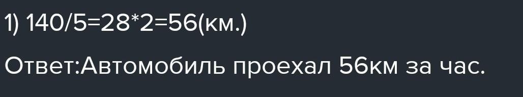 Автомобиль преодолел 140 километров за 2 часа. В первый час он преодолел дистанцию 2/5 (дробь), как и во второй час. Сколько километров проехала машина за первый час?