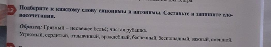 Угрюмый - антоним веселый, синоним мрачный, сердитый - синоним злой, антоним ласковый, отзывчивый - антоним равнодушный, синоним душевный, враждебный синоним злобный, антоним мирный.