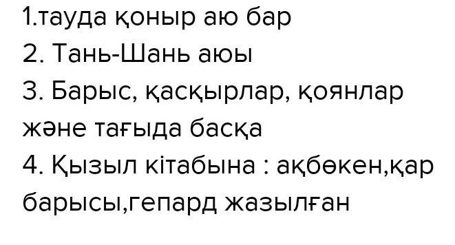 Ақбөкен , Мензбир суыры , Қар барысы, Құлан Сабаншы (манул) , Қарақал, Бүркіт, Қарақұйрық, Жиекдуадақ