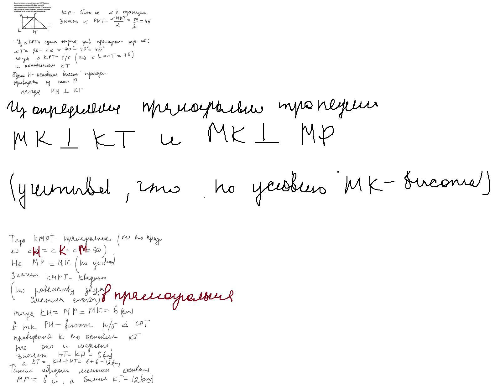 Высота прямоугольный трапеции KMPT равна меньшему основанию