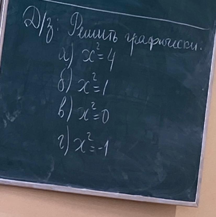 Объяснение: Алгоритм решения. Строите у=х² - параболу и у=4; - прямую. Находите точки пересечения, и указываете абсциссы этих точек, они и будут являться корнями уравнения. Детальнее смотрите ниже.