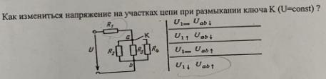 при размыкании ключа общее сопротивление группы параллельно включенных резисторов (там останутся только R₂, R₃) станет больше. А т.к. напряжение, приложенное ко всей цепи U не изменилось по условию, то на бо'льшем сопротивлении будет большее падение напряжения. При этом падение напряжения на резисторе R₁ естественно уменьшится, т.к. U₁+U_ab=U (по правилу Кирхгофа).