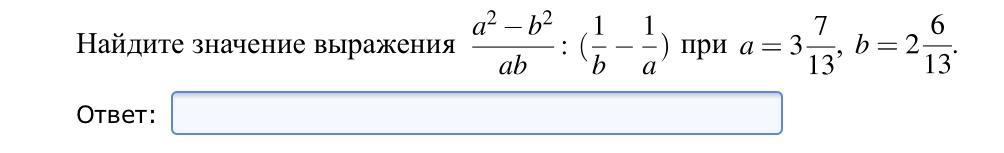 итоговое уравнение a+b, подставляем значение 3 целых 7 13 = 2 целых 6 13 , складываем целую часть 6 целых в числители и знаменатели 13 и 13 значит 5+1= 6