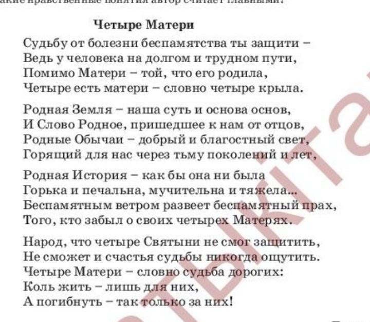 Придумайте другое название произведению М. Шаханова "Четыре Матери"