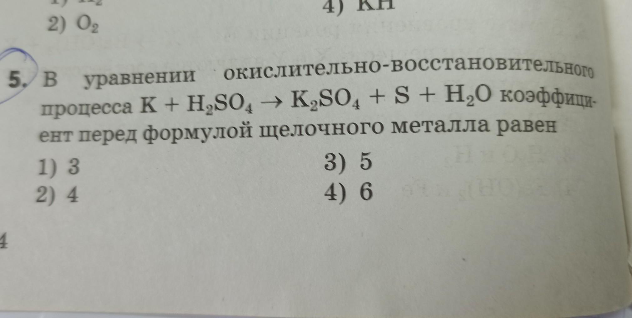 В уравнении окислительно-восстановительного процесса К+ H2So4 K2SO4 +S+H20 коэффициент перед формулой щелочного металла равен. Желательно с решением