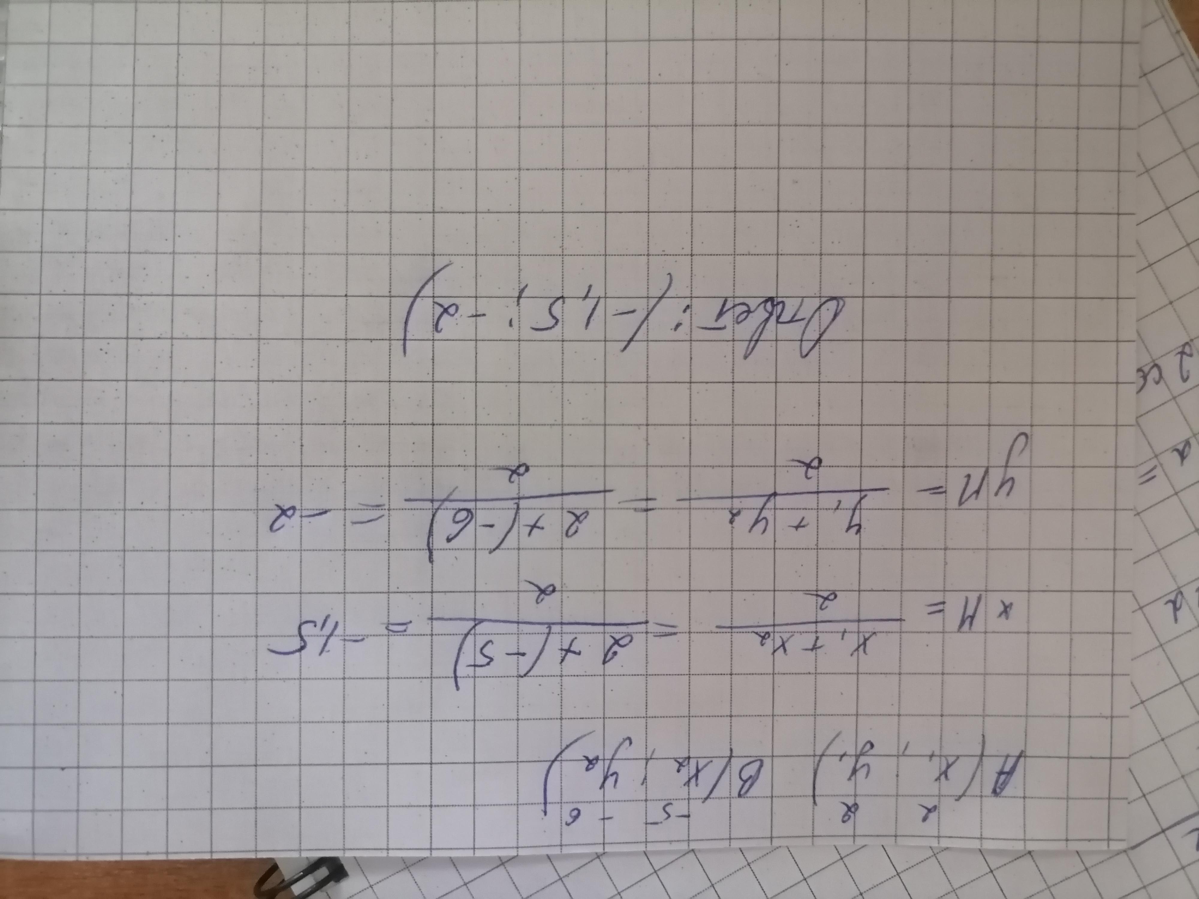 найди координаты точки М середины отрезка AB если известны координаты точек A (2; 2) и B( - 5 ;- 6)