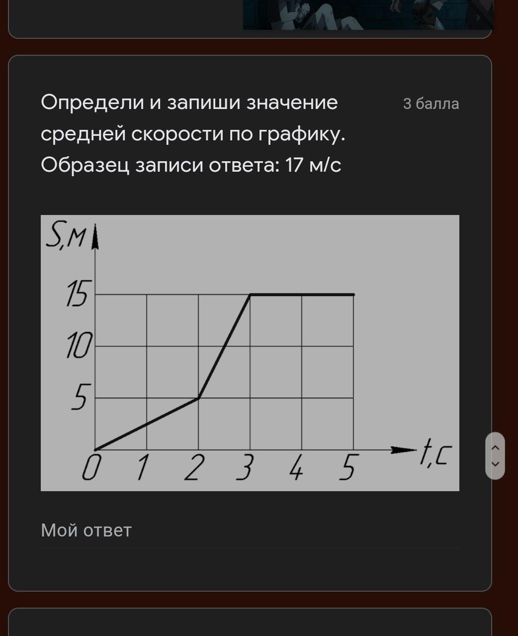 Определи и запиши значение средней скорости по графику. Образец записи ответа: 17 м/с