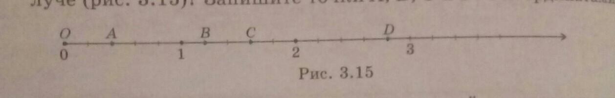 Какие числа соответствуют точкам A,B,C и D на координатном луче (рис. 1.15)? Запишите точки A,B,C и D с координатами.