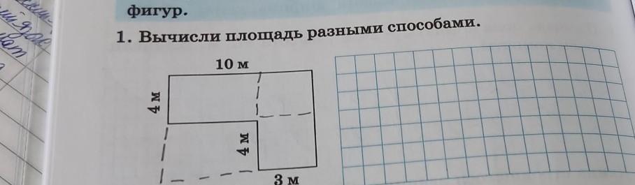 1. Вычисли площадь разными способами. 10 м 3 4 м 4 м 3 м