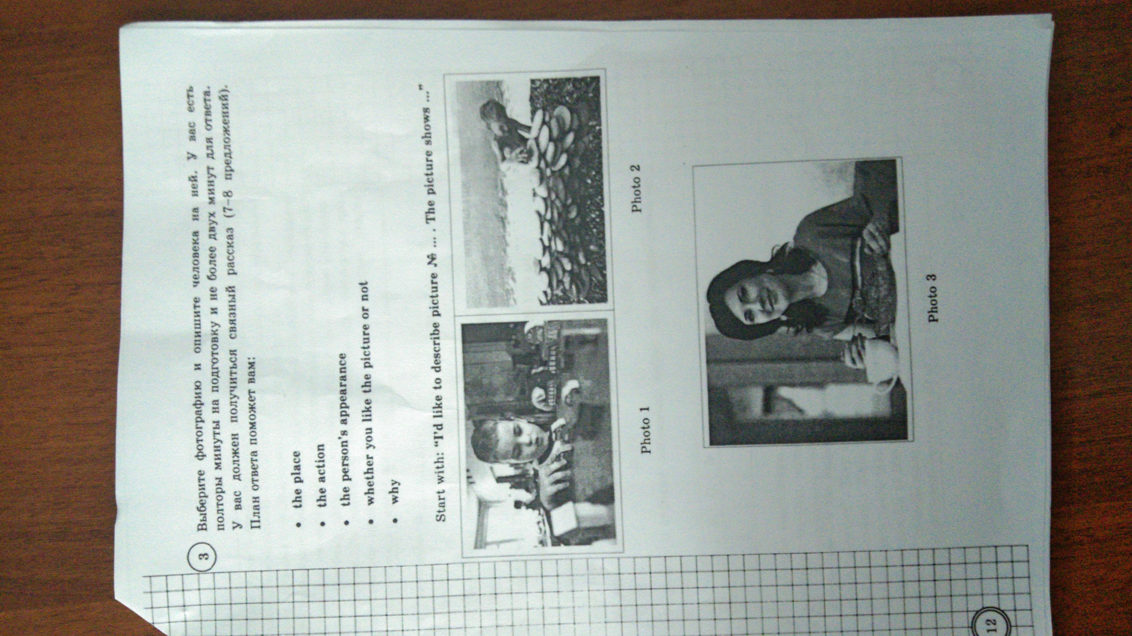 I’d like to describe picture number 3. In the picture, I can see a woman. Her hair is black, her eyes are pretty big. She is smiling. Shе is wearing а T-shirt. In her hands is a spооn, shе is going to eat pоrridgе. (Что у нее в тарелке, я не вижу)