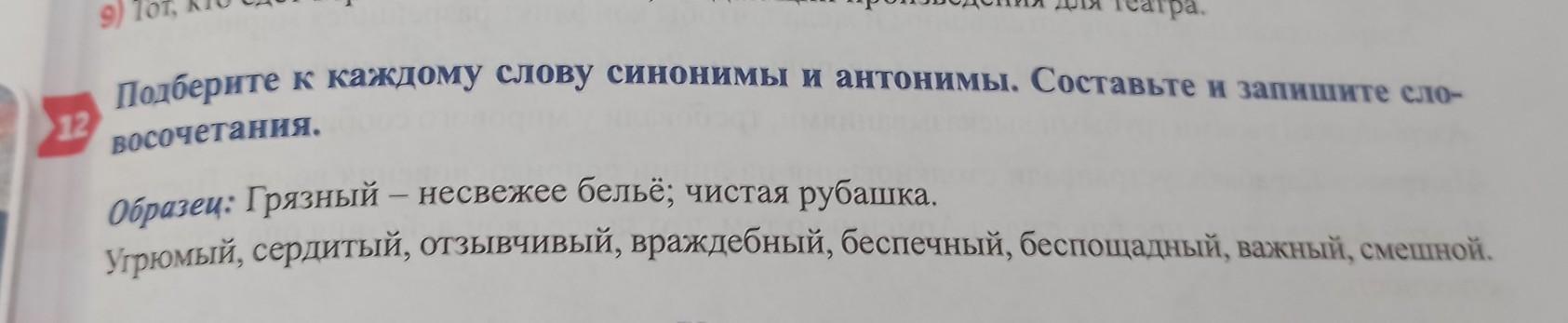Угрюмый-веселый;мрачный. Сердитый-гневный;ласковый. Отзывчивый-равнодушие;чуткий. Враждебный-злой;дружественный. Беспечный-осторожный;беззаботный. Беспощадный-безжалостный;милосердый. Важный-отвественный;незначительный. Смешной-веселый;грустный