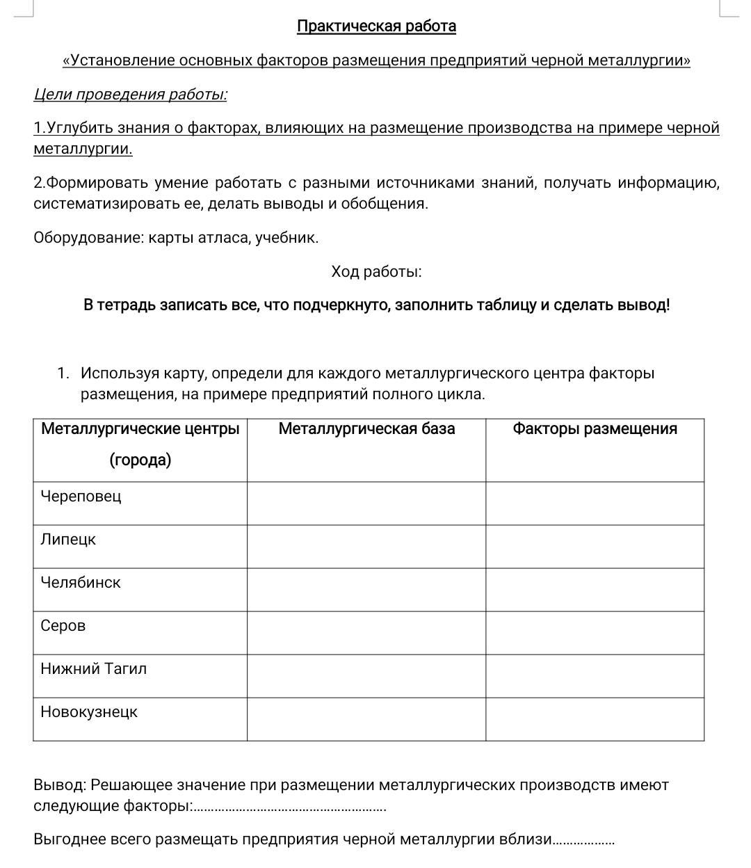 Самостоятельная работа по географии!!!!!!! Помогите пожалуйста!!!!!!! даю 30 балов!!!!! срочно, на сегодня !!!!!!!!!!!