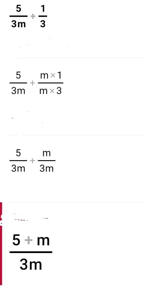 5/3m+1/3=5/3m+1m/3m(добавили недостоющий знаменатель) =6m/3m=2