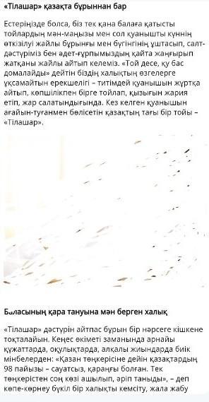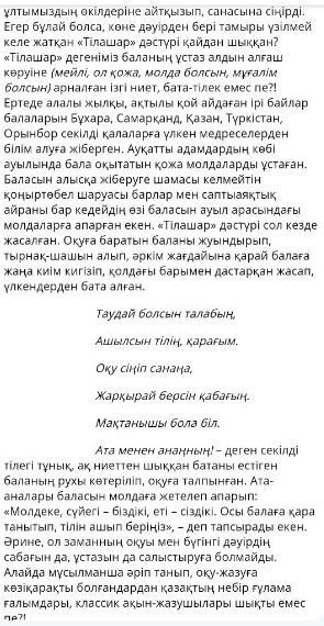 6. Бұрынғы және қазіргі тілашар дәстүрі туралы шағын ойтолғау жазыңдар. Сөздердің дұрыс жазылуына көңіл бөліңдер.