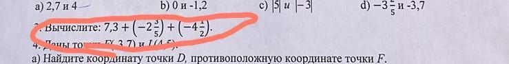 7,3+(-2 3/5)+(-4 1/2)= 7,3-2 3/5-4 1/2= 7,3-2,6-4,5=0,2