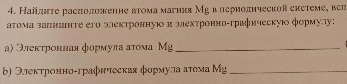 4. Найдите расположение атома магния Mg в периодической системе, вспомнив строение