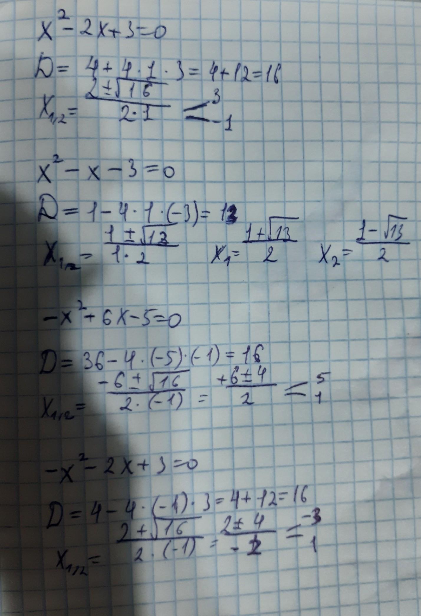 б) x²-x-3=0(a=1;b=-1;c=-3)