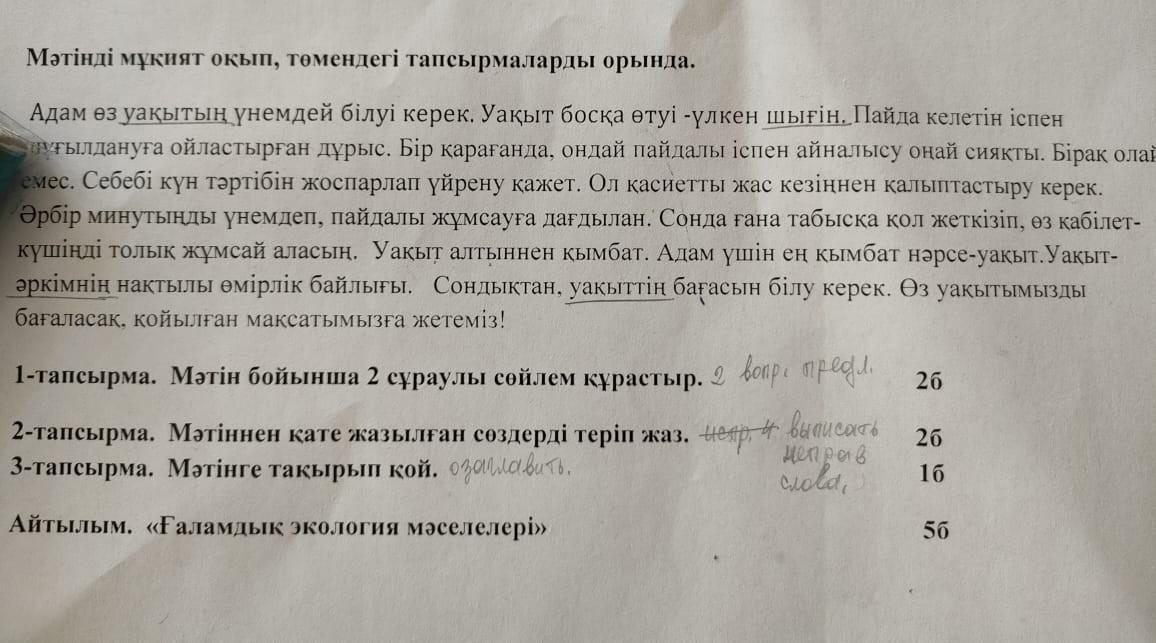 2-тапсырма. мәтіннен қате жазылған сөздерді теріп жаз.