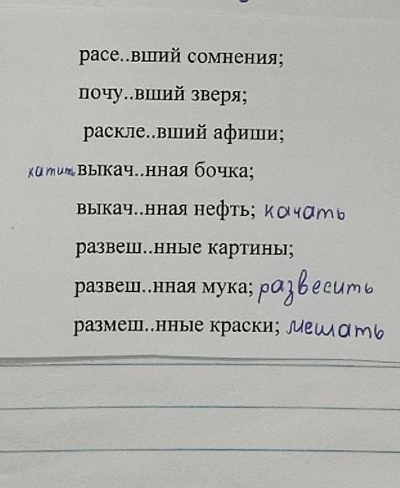 ✓ "а/я" пишутся перед "н/нн" в страдательных причастиях, образованных от глаголов на "ать/ять".