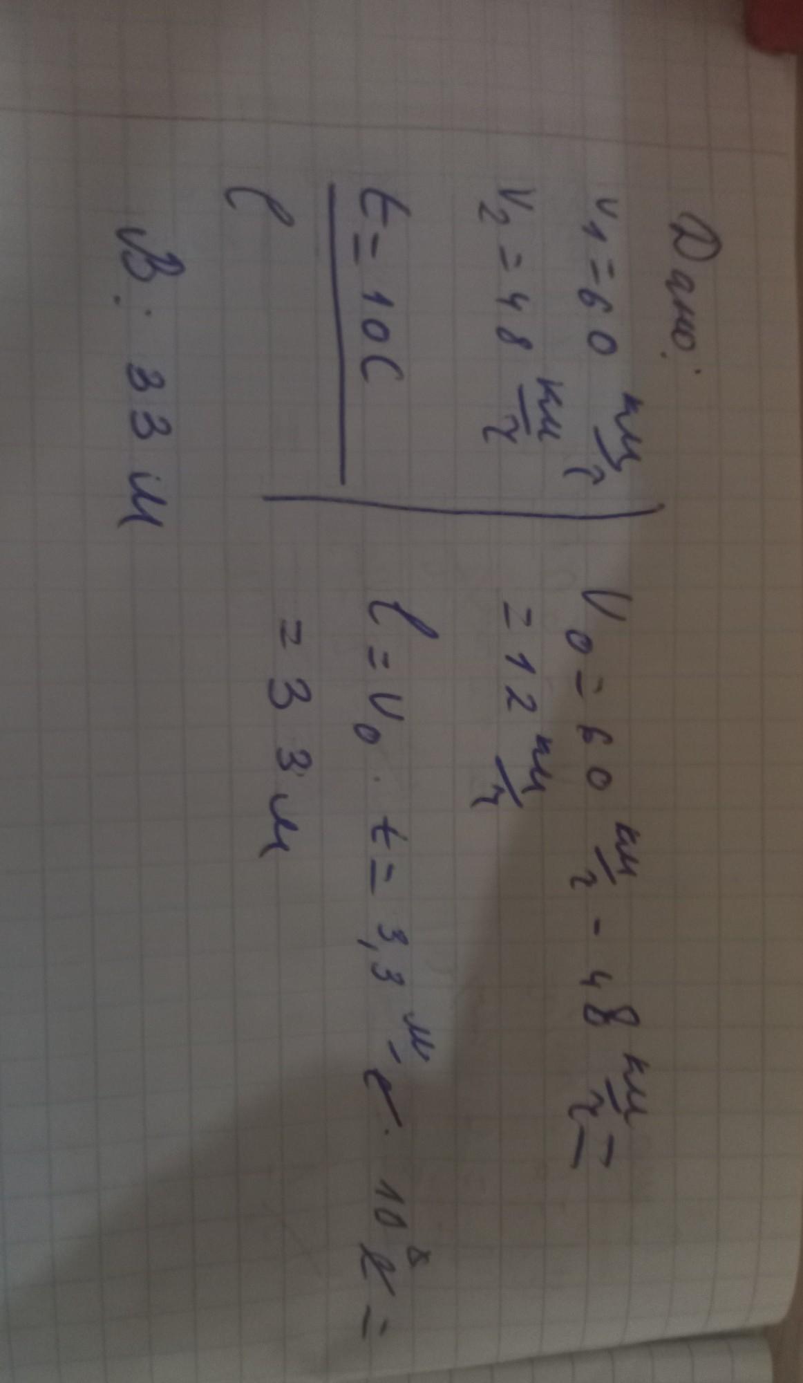 Два зустрічні потягу проходять один повз другого зі швидкістю 48 км/год і 60км/год. відповідно пасажир першого потягу помітив що другий потяг пройшов повз його вікно за 10с Якою е довжина другого потяга. Пожалуйста, можно полностью дано, формулу, розв'язання)