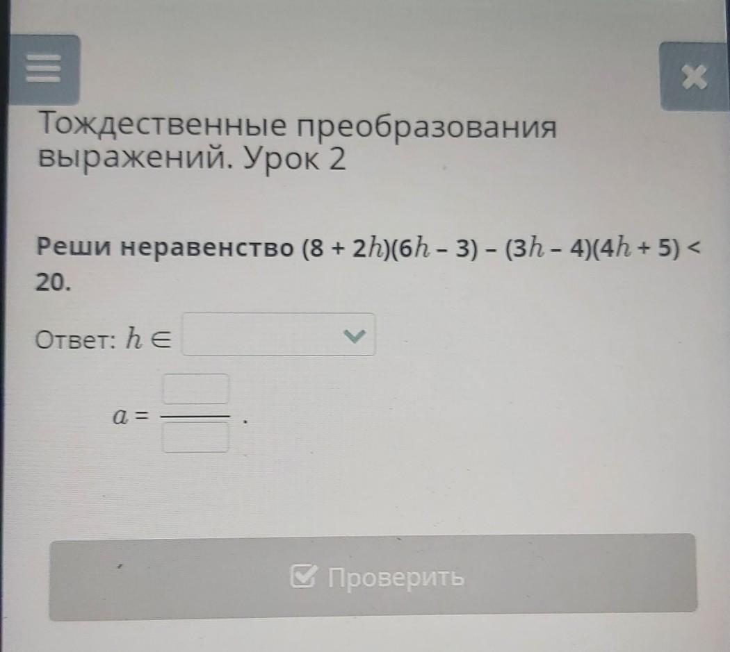Ответ: h ∈ 43 h - 4; a =