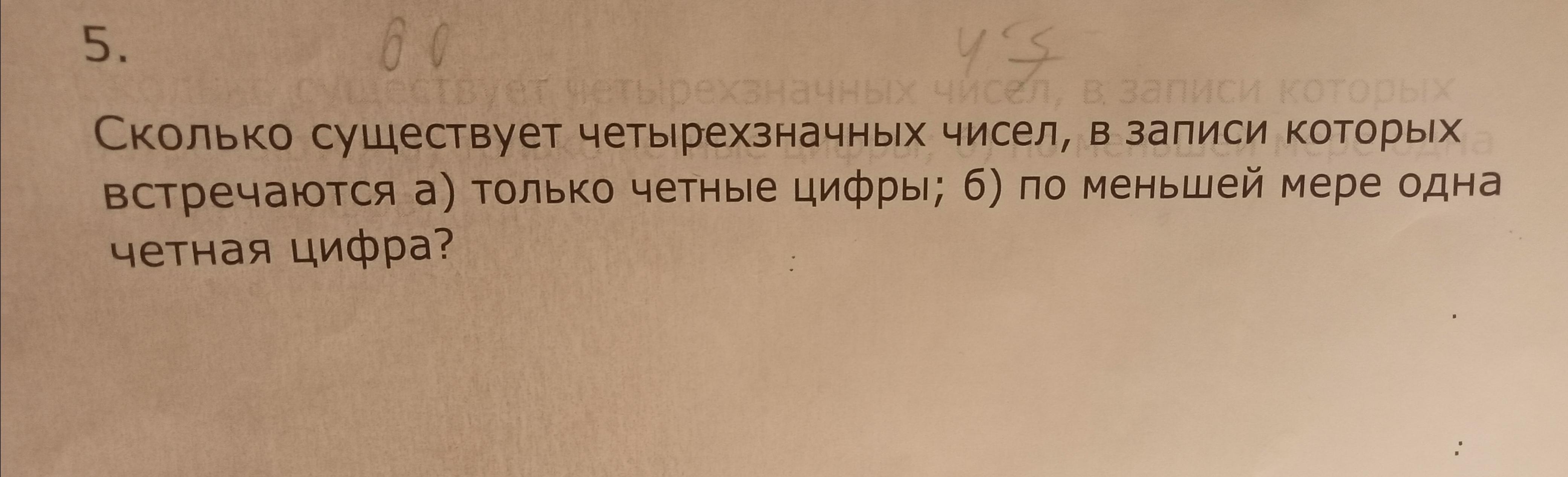 Сколько существует четырёх значных чисел, в записи которых встречаются а) только чётные цифры. Б) по меньшей мере одна четная цифра?