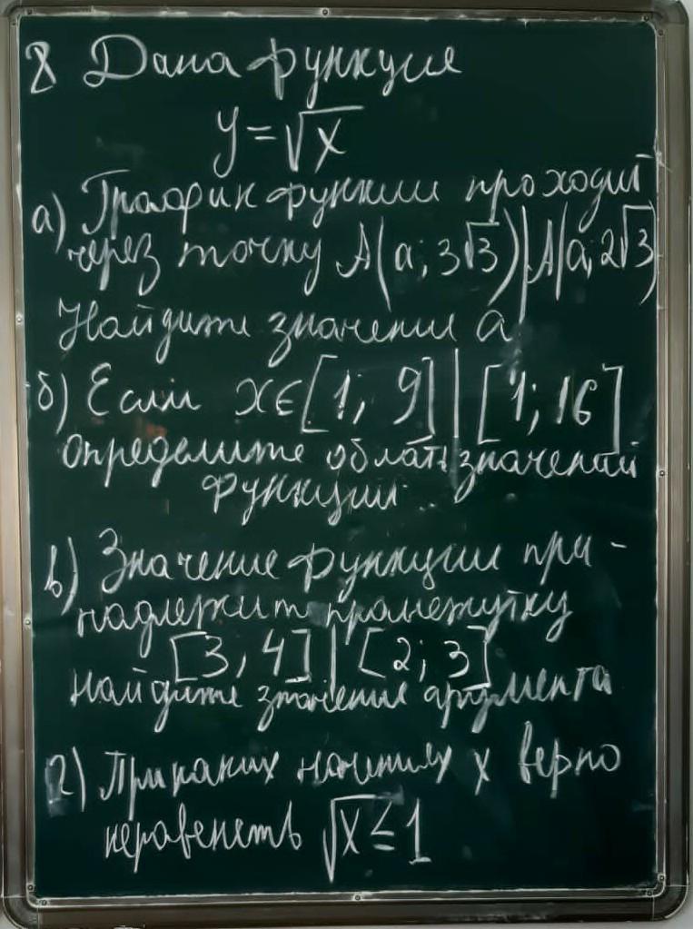 г) √х ≤ 1; х ≥ 0, так как подкоренное выражение не должно быть отрицательным, то минимальное значение, которое может принимать х – это 0