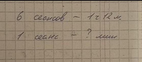 515. Шесть одинаковых по длительности сеансов радиосвязи продол- жались 1 ч 12 мин. Какова длительность сеанса? с краткиой записью пж