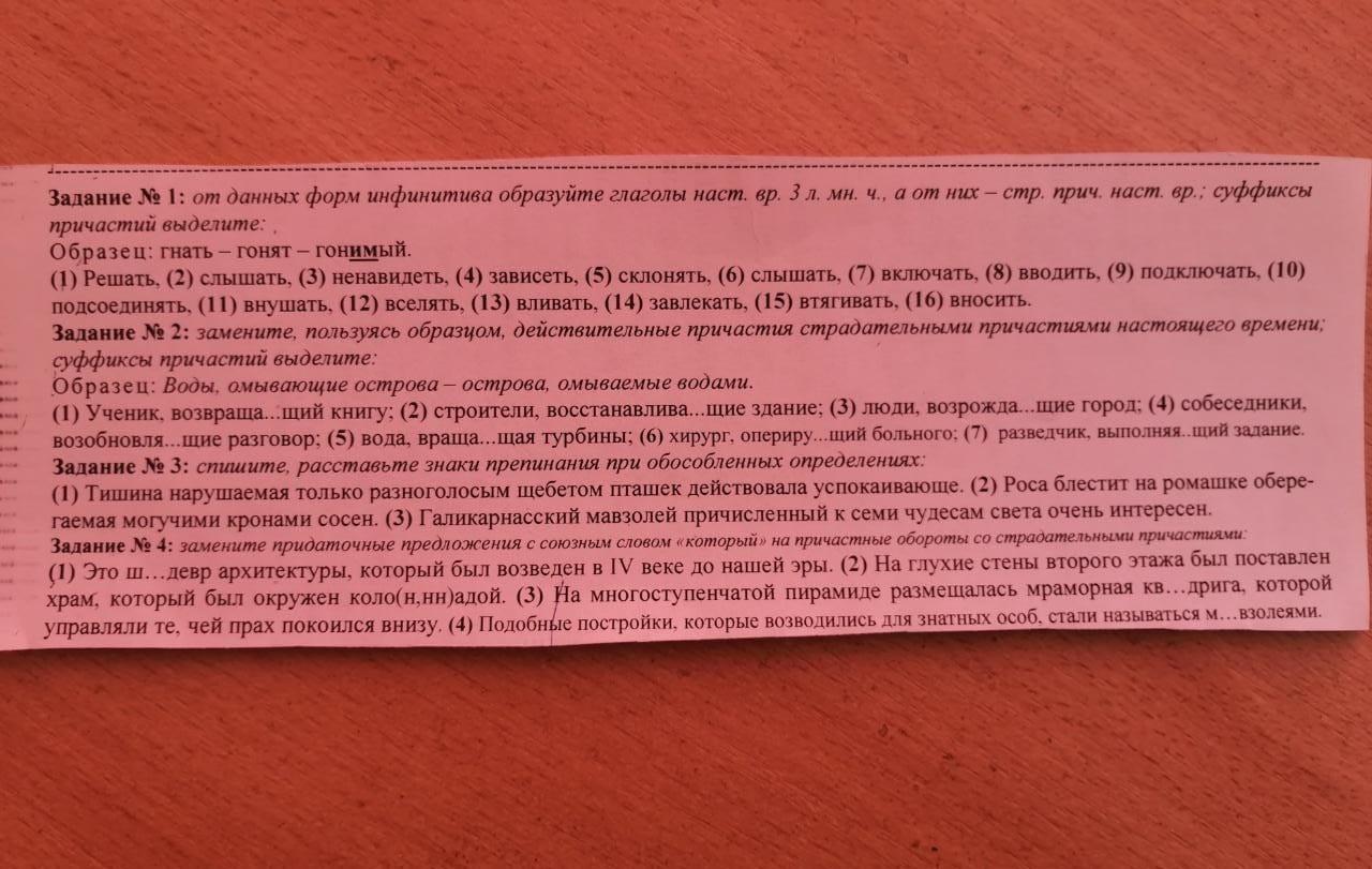 2) Книга, возвращаемая учеником; здание, восстанавливаемое строителями; город, возрождаемый людьми; разговор, возобновляемый собеседниками; турбины, вращаемые водой; больной, оперируемый хирургом; задание, выполняемое разведчиком