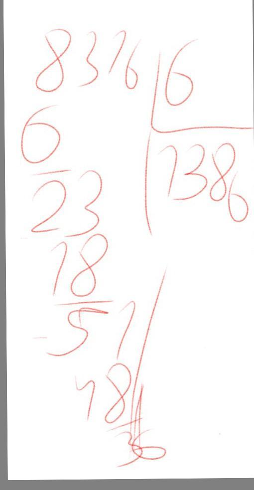 8316:6=1386 8:6=1=2( ост). 23:6=18=5(ост). 51:6=48=3(ост). 36:6=6