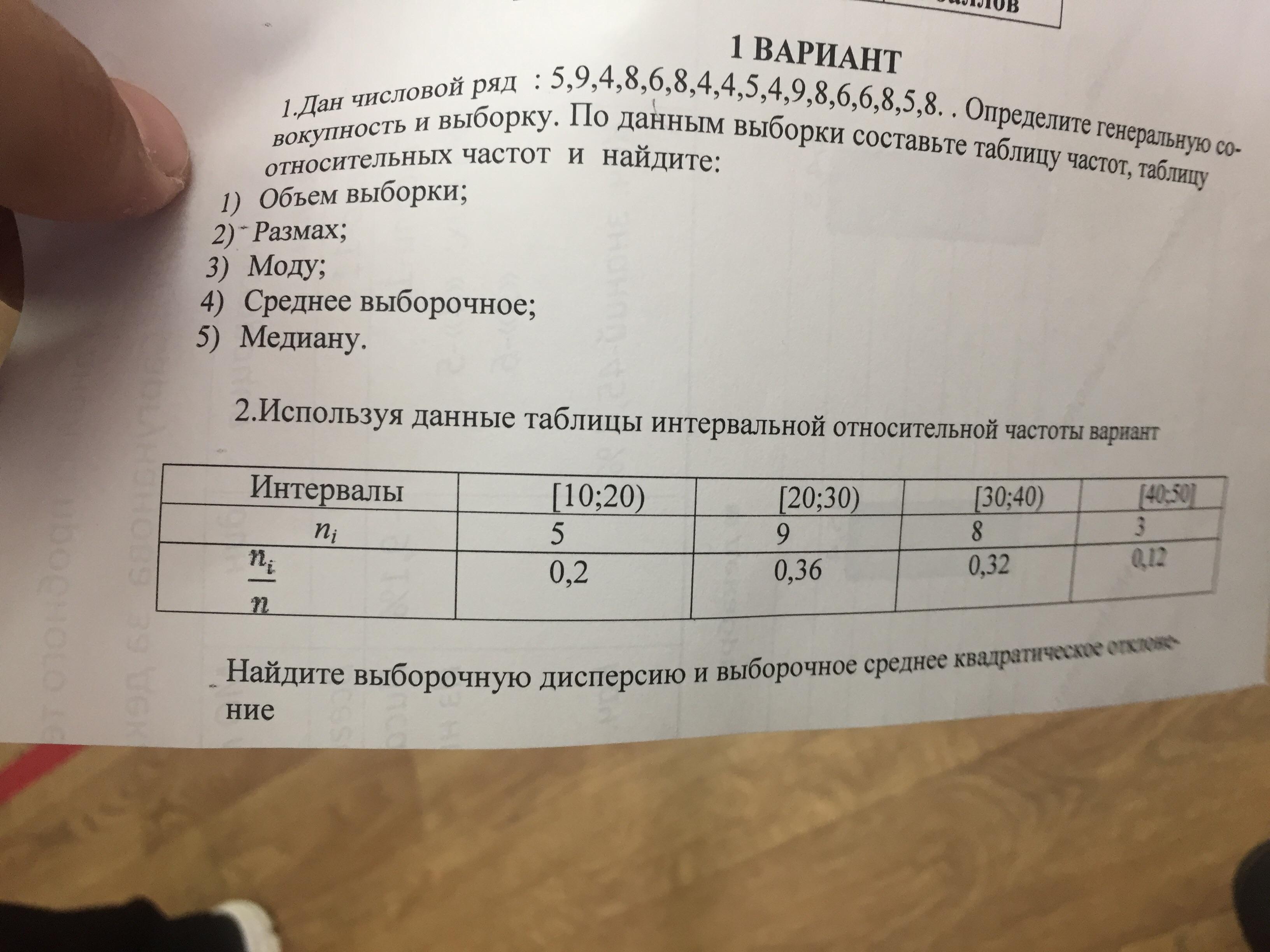 заполните третью строку таблицы. Найдите выборочную дисперсию и выборное среднее квадратичное отклонение