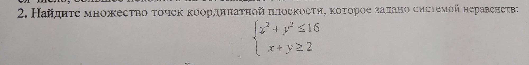 2. Найдите множество точек координатной плоскости, которое задано системой неравенств: