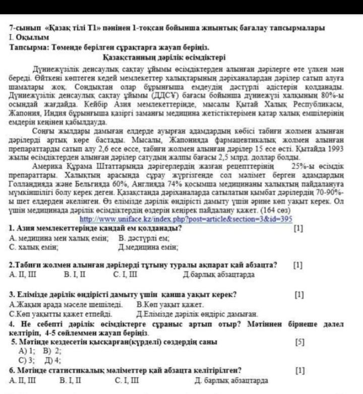 С)3апзатыс берілген мәтінді жақсылап оқу керек