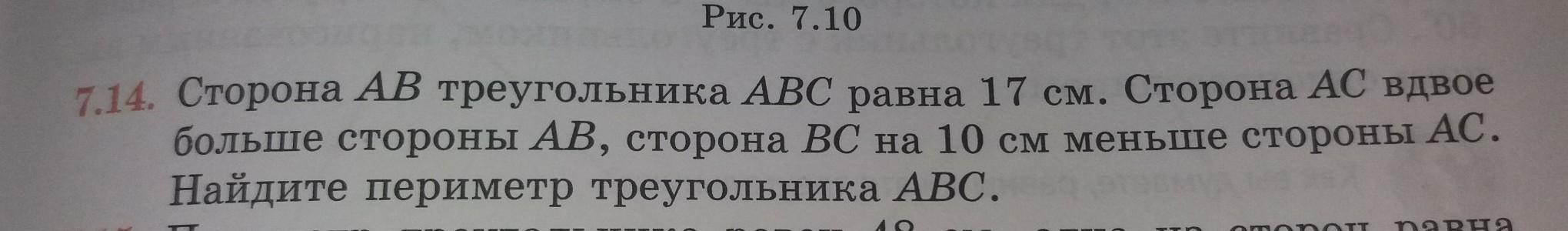 Сторона АВ треугольника АВС равна 17 см. Сторона АС вдвое больше стороны АВ сторона ВС на 10 см меньше стороны АС. Найдите периметр треугольника АВС