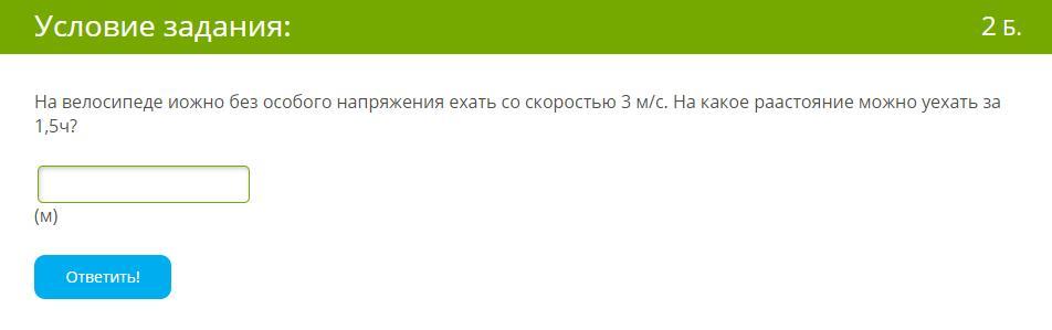 На велосипеде иожно без особого напряжения ехать со скоростью 3 м/с. На какое раастояние можно уехать за 1,5ч?