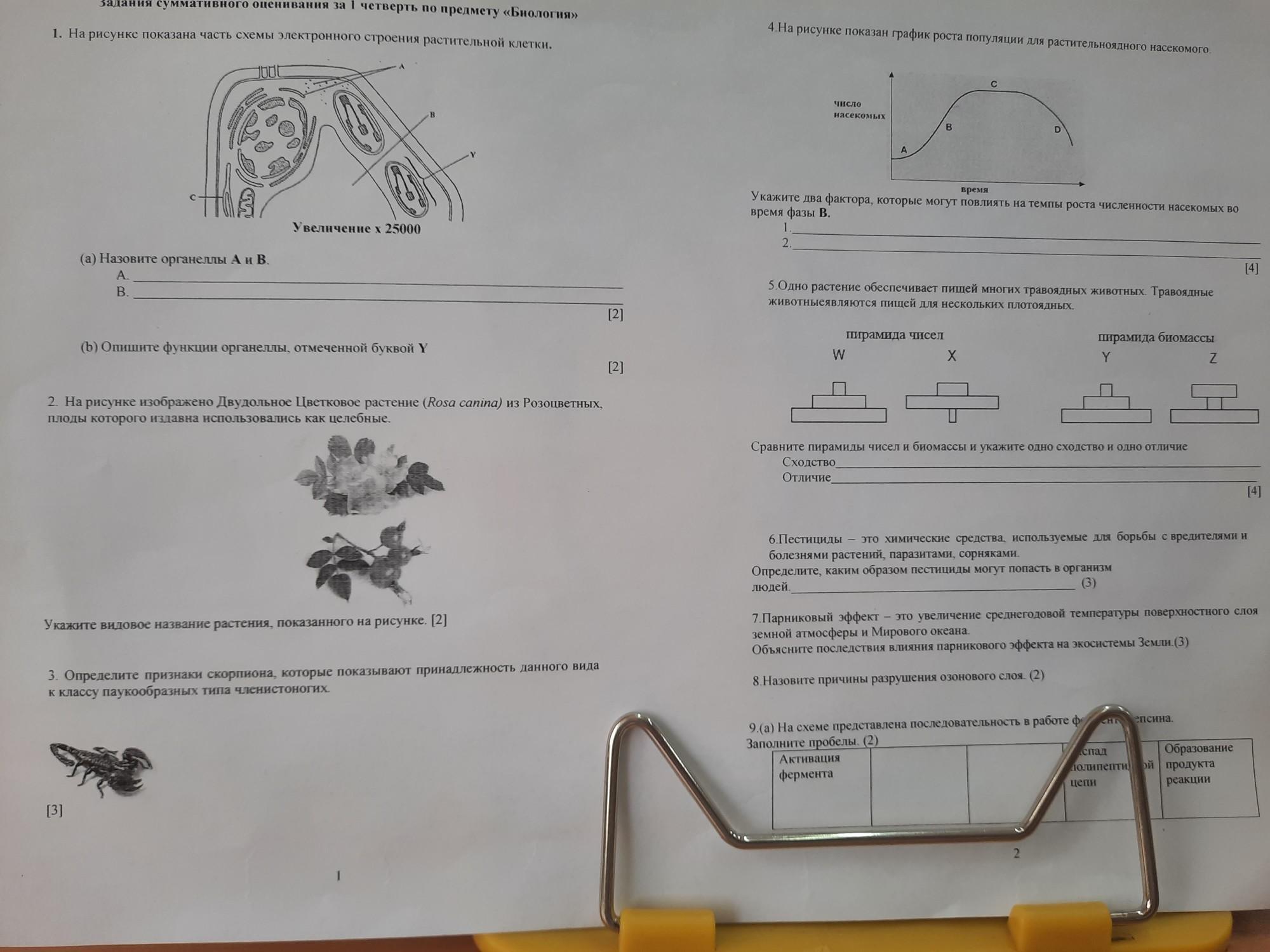 Задання суммативного оценивания за 1 четверть по предмету «Биология» 1. На рисунке показана часть схемы электронного строения растительной клетки. БНО B Увеличение х 25000 (а) Назовите органеллы А и В. А. В. [2] (b) Опишите функции органеллы, отмеченной буквой Ү [2]